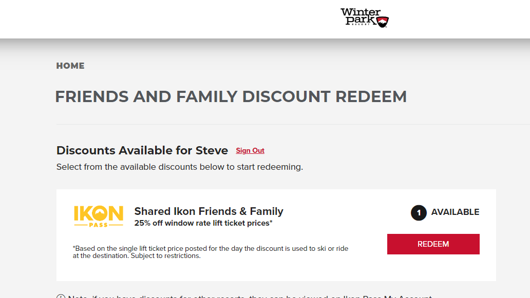 Log in to Ikon Pass to redeem your discounts