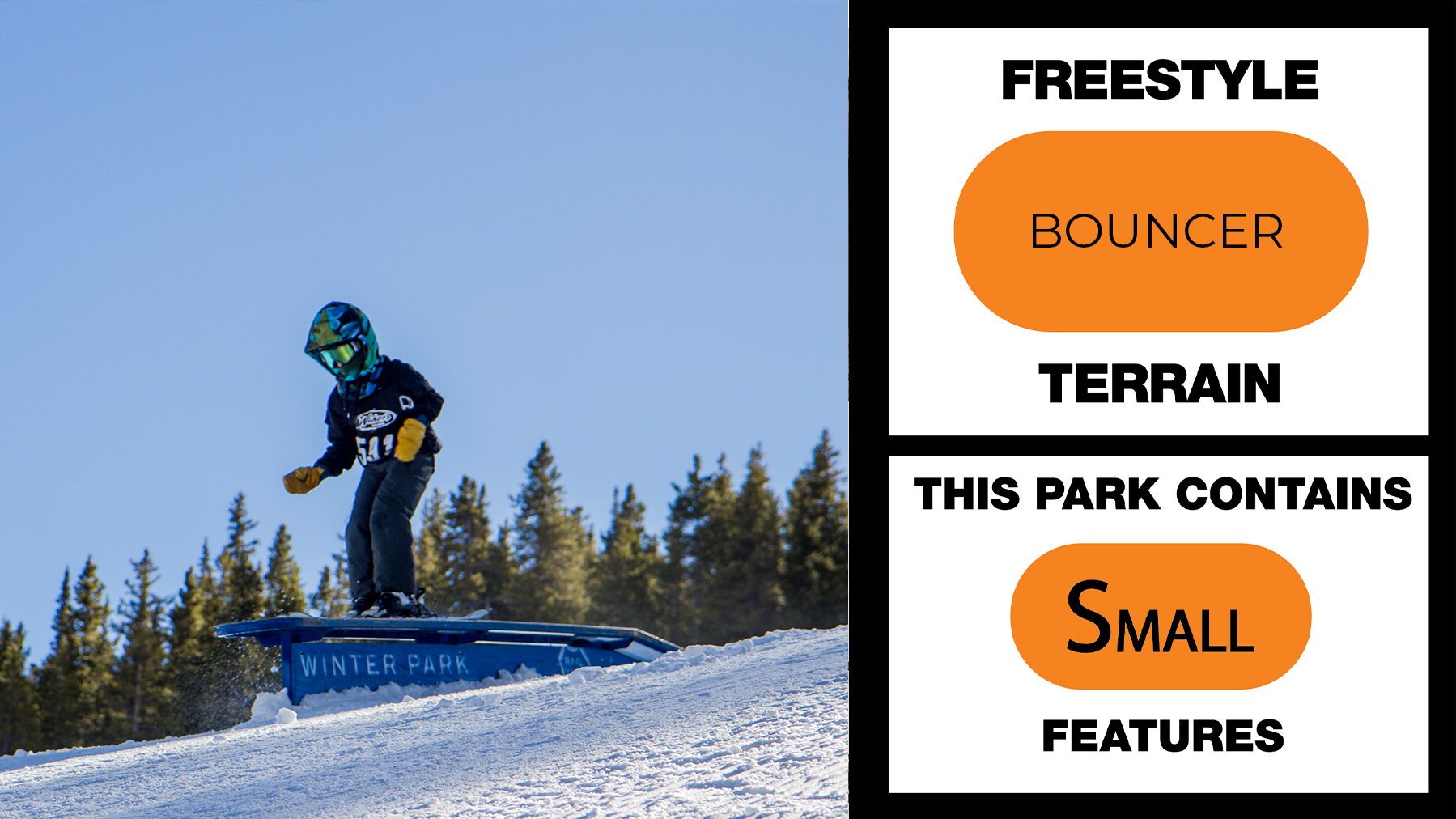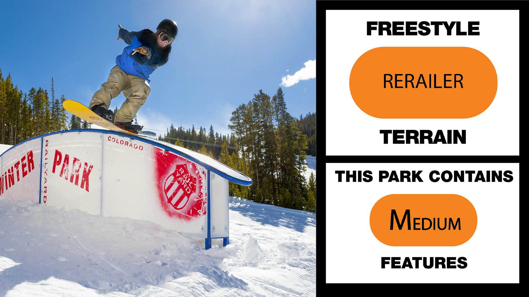 Lower Rail Yard features the largest and most technical park elements at Winter Park Resort. Remember, until you are ready to take a trick here, use our other parks to learn and dial in your skills.