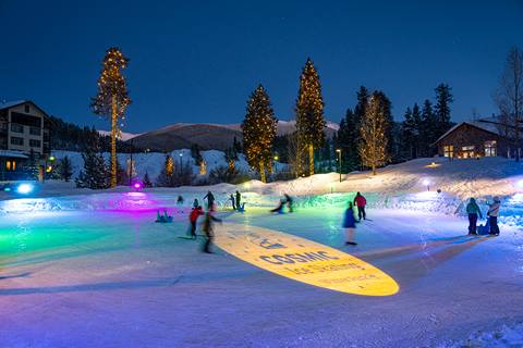Join us on Thursdays, Fridays, and Saturdays from 5 - 7pm for cosmic ice skating at the Village Pond. Stop by the Adventure & Supply Co. to pick up your ice skate rentals and head to the pond where our DJ will be playing music as you glide across the cosmic outdoor pond at Winter Park, presented by Rendezvous.